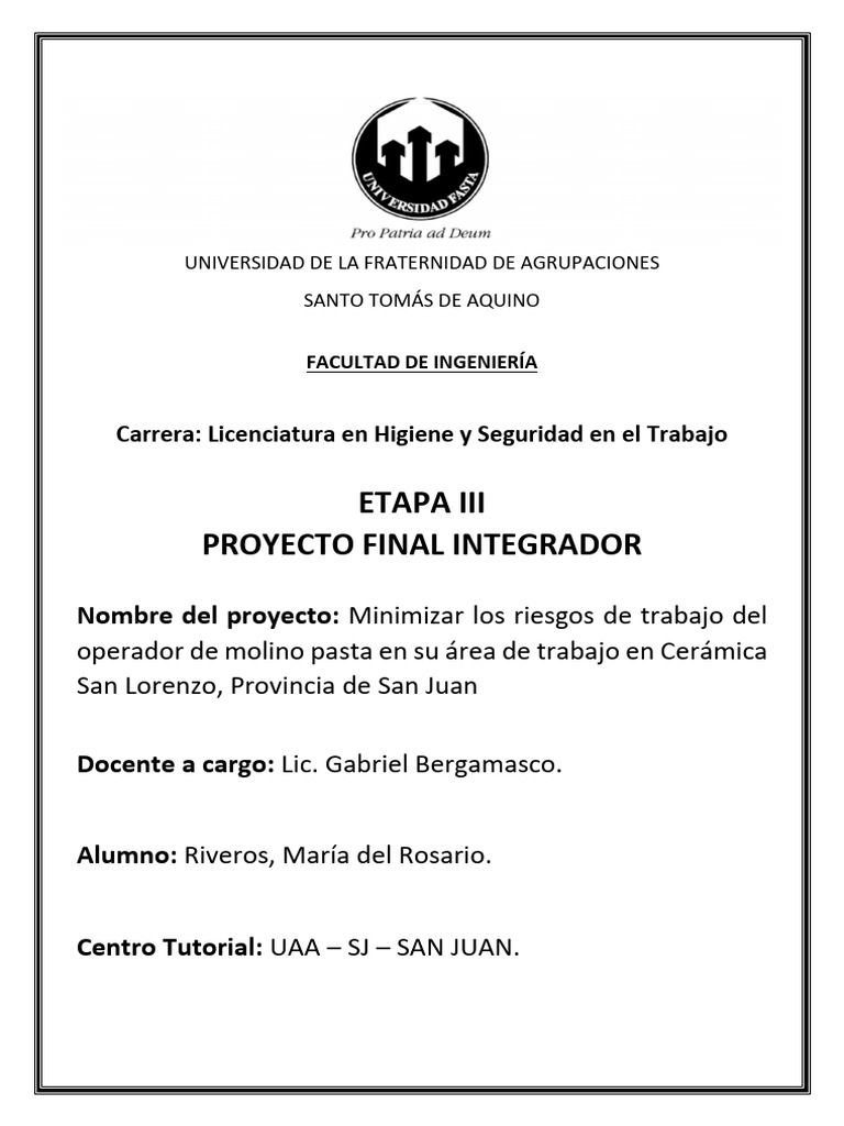 Proyecto Final Integrador Alumna: Riveros María del R.
