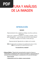 La imagen es un medio de reproduccin de los contornos (visuales, auditivos, o audiovisuales) de algo que se desea representar, que fue utilizado ms tarde por los seres humanos para dar a conocer a los dems su propio pensamiento y conocimiento. La imagen como mensaje Pero para que los seres humanos adquieran esta nueva capacidad psicomotriz, fue necesario el cumplimiento de estas tres condiciones psicolgicas: LA MEMORIA FIGURATIVA, que permite recordar y as reconocer las formas y colores de distintos objetos. LA INTENCIONALIDAD DE FIJAR ALGO DE MODO ICNICO LA CLASIFICACION DE LOS ELEMENTOS DE LA IMAGEN SEGN CATEGORIAS. La imagen como objeto referencial La funcin bsica de la imagen referencial es la de ser sustituto de un sujeto o un objeto ausente, al que se le otorga una potencialidad comunicativa. Tiene un origen (un sujeto que produce la imagen), un objeto (al cual la imagen representa) y una mirada (un sujeto que recibe la imagen).