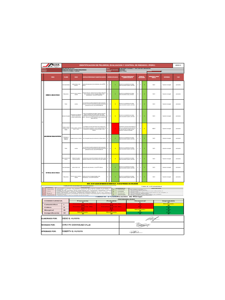 IDENTIFICACION DE PELIGROS, EVALUACION Y CONTROL DE RIESGOS ( IPERC) ANEXO 01