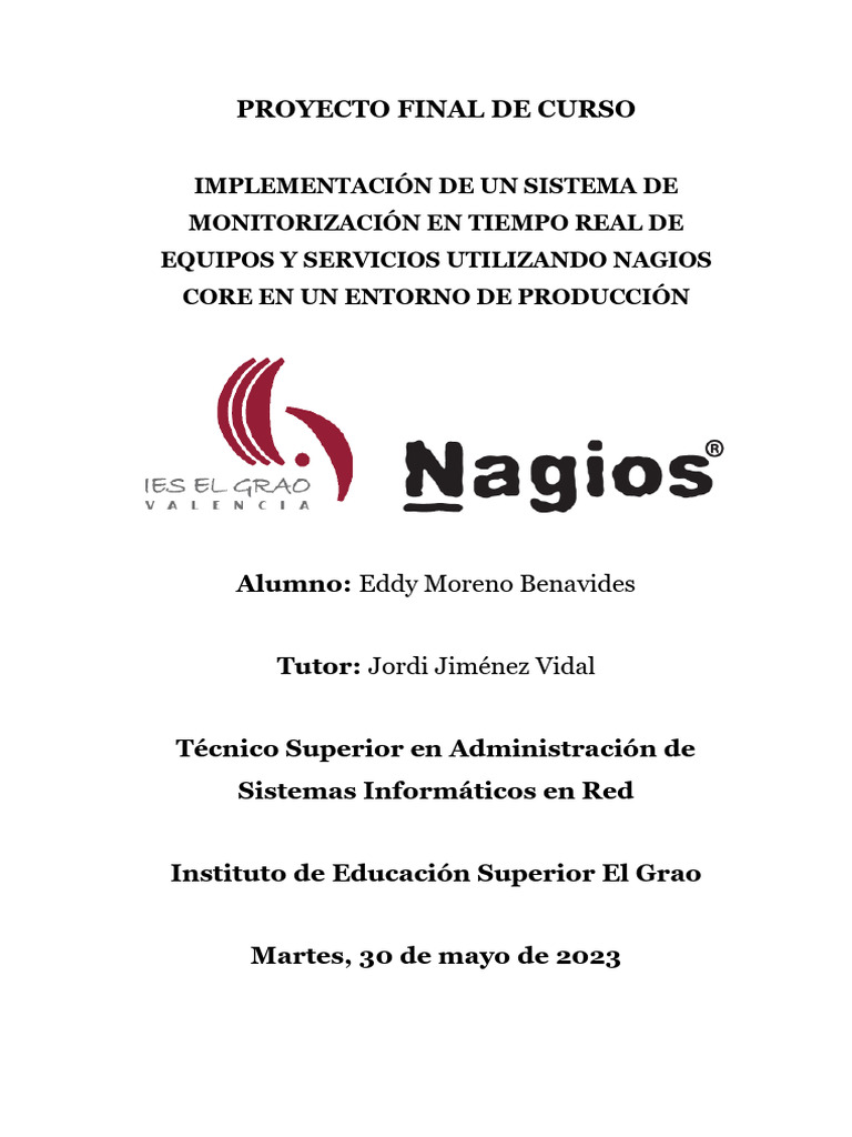 en red Nagios Core, siendo esta una herramienta de monitoreo que permite la
