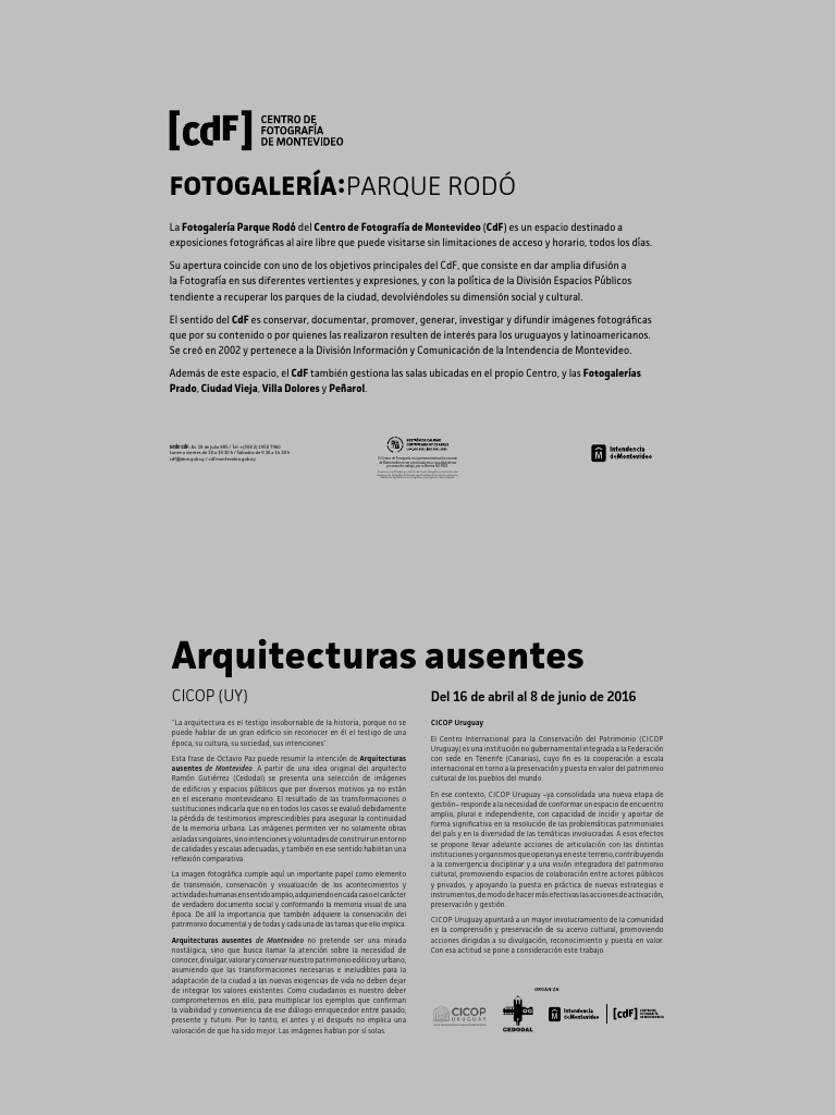 Universidad de la República, Facultad de Arquitectura. te a la exhibición de fotografía: las tres salas ubicadas consolidado la línea editorial CdF Ediciones. También