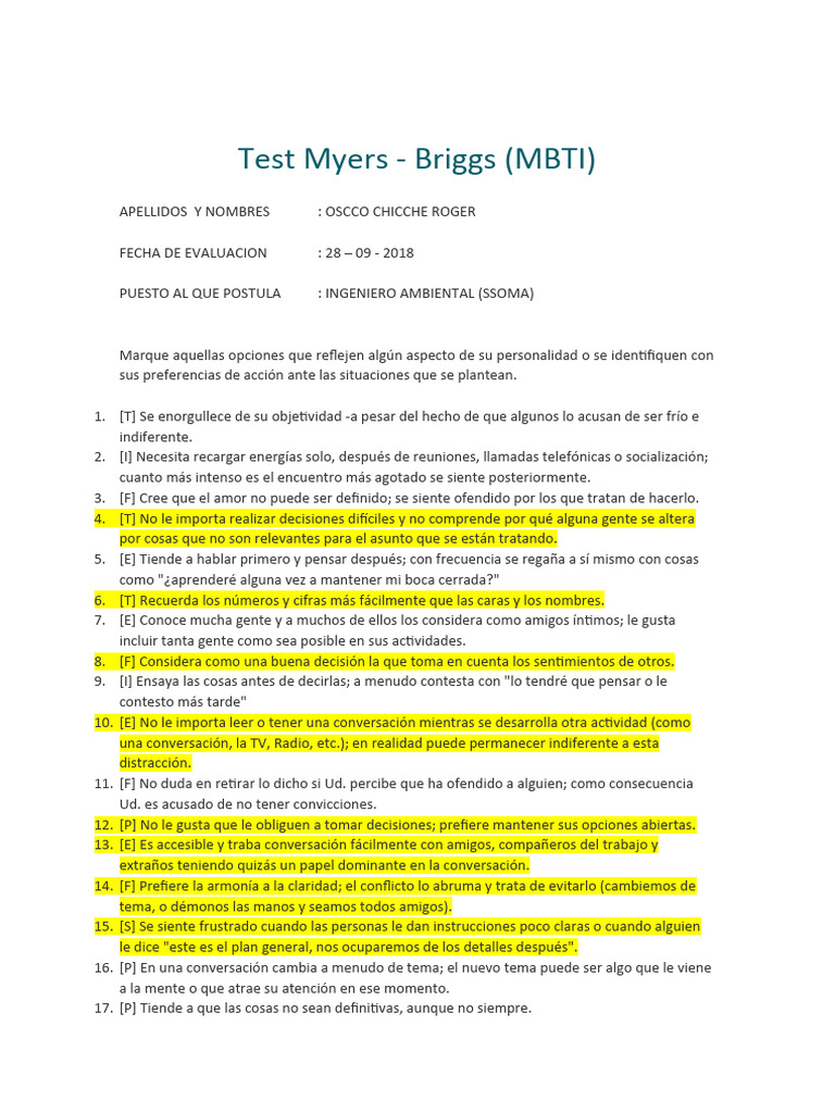Test Myers - Briggs (MBTI)