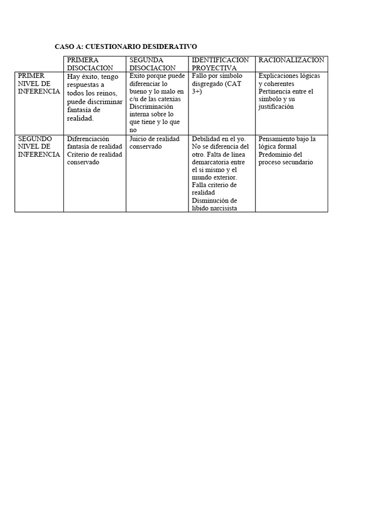 CASO A: CUESTIONARIO DESIDERATIVO
