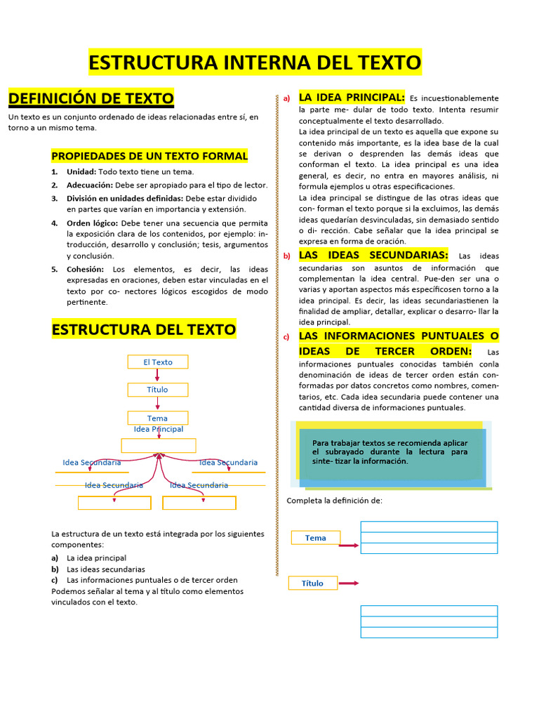 La estructura de un texto está integrada por los siguientes Tema