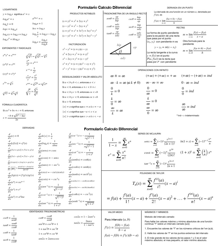 Formulario Calculo Diferencial DERIVADA EN UN PUNTO