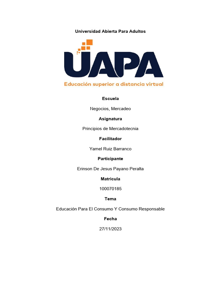 1. Analizar el concepto de educación para el consumo y su importancia en