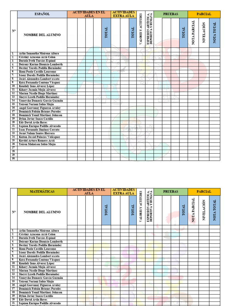 N° NOMBRE DEL ALUMNO
