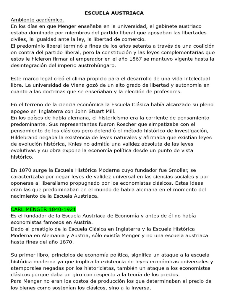 Moderna en Alemania y Austria, sólo existía Menger y no una escuela austriaca
