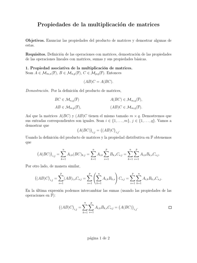 6. Ejercicio. Demuestre las propiedades del producto de matrices.