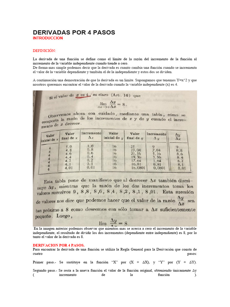 RESUELVA POR EL METODO DE 4 PASOS LAS SIGUIENTES DERIVADAS: