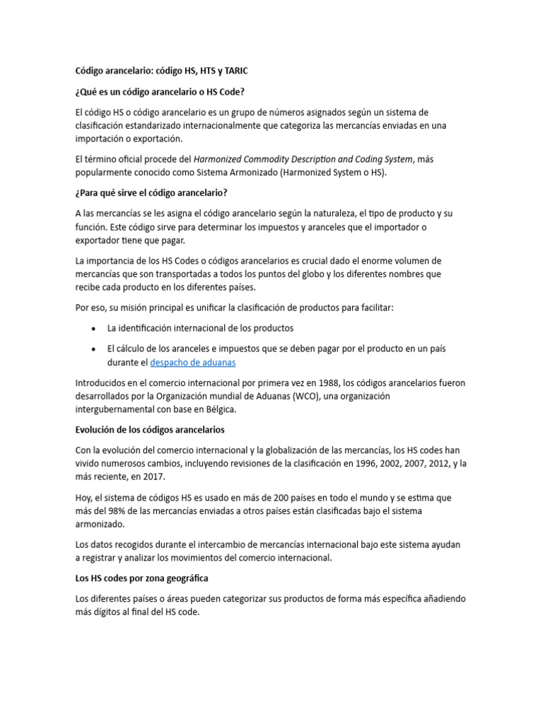 arancelarios, como es el caso de los códigos HTS o los códigos TARIC, de los que hablaremos más