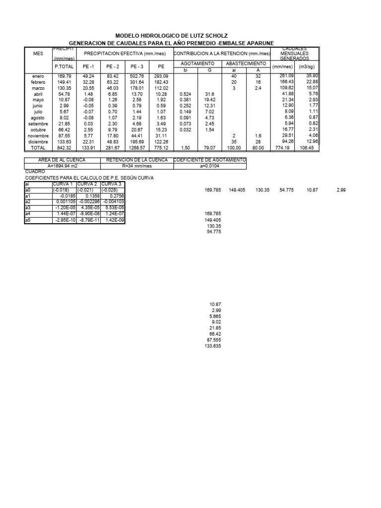 GENERACION DE CAUDALES PARA EL AÑO PREMEDIO -EMBALSE APARUNE
