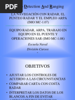 pantalla del radar una línea de 20 impulsos, cuya extensión es de 8 millas marinas a partir de la