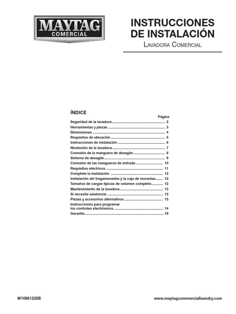 Contacte a su distribuidor autorizado de Maytag® para lavanderías comerciales. Para ubicar a su distribuidor autorizado de Maytag® para