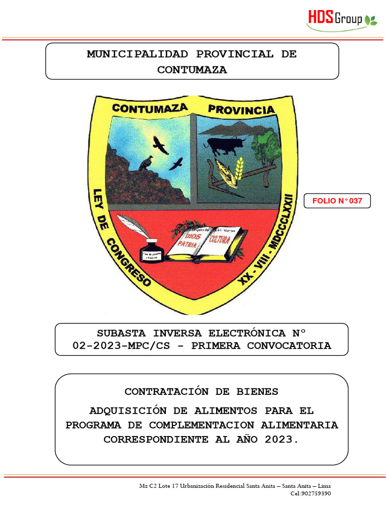 con la SUBASTA INVERSA ELECTRONICA N° 02-2023-MPC/CS -