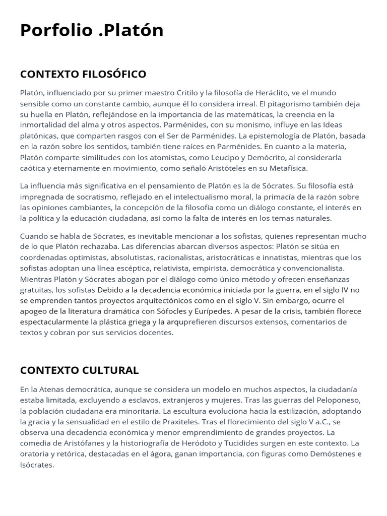 Vinculado con Parménides, Platón sostiene que el mundo sensible es efímero y