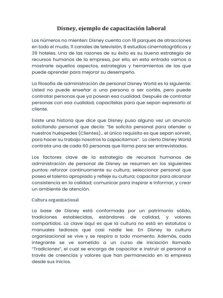 manuales tediosos que casi nadie lee. En Disney la cultura