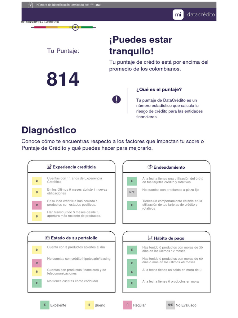 Tu puntaje de DataCrédito es un