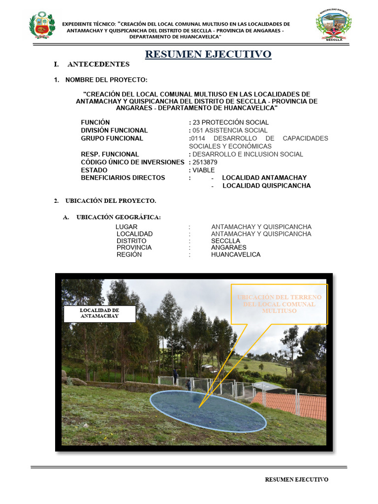 EXPEDIENTE TÉCNICO: "CREACIÓN DEL LOCAL COMUNAL MULTIUSO EN LAS LOCALIDADES DE