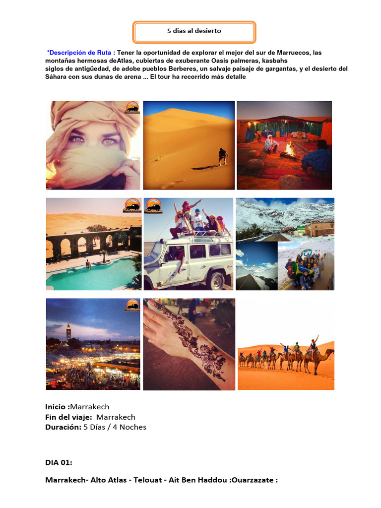 *Descripción de Ruta : Tener la oportunidad de explorar el mejor del sur de Marruecos, las