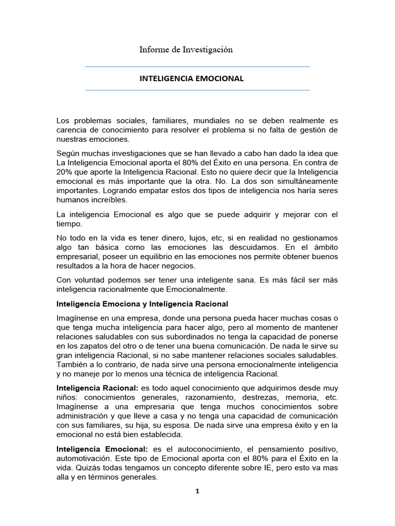 Inteligencia Emocional: es el autoconocimiento, el pensamiento positivo,