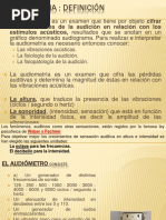 Mide la cantidad y la calidad de sonidos que oímos. Establece el umbral auditivo mínimos y el umbral auditivo
