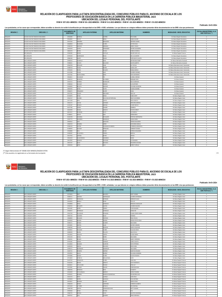 Clasificación Concurso Magisterial 2023