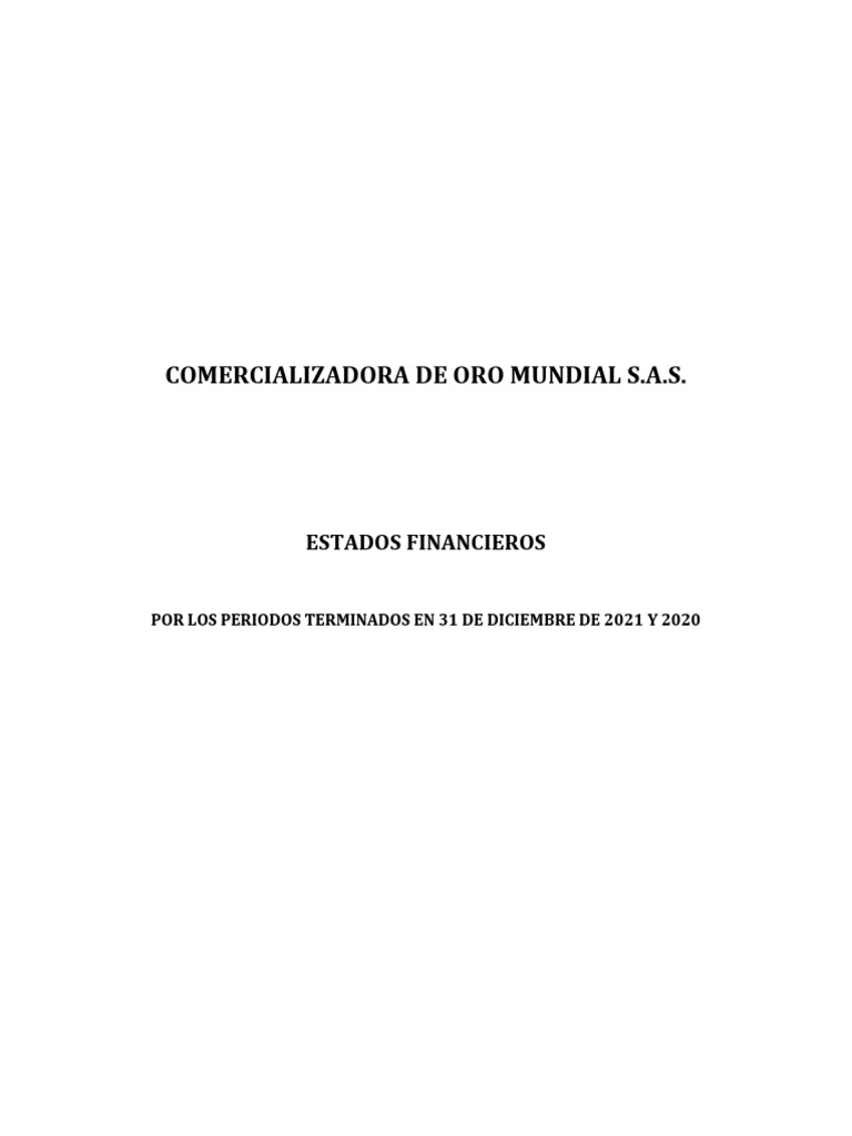 COMERCIALIZADORA DE ORO MUNDIAL S.A.S al 31 de diciembre de 2021 y 2020, que se presentan para fines de