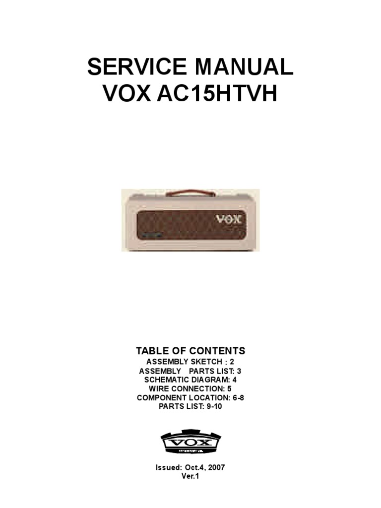 Guardar VOX AC15 HTVH Service Manual para más tarde
