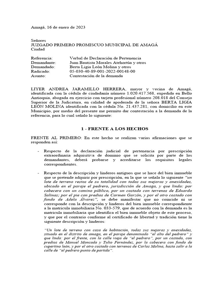 Asunto: Contestación de la demanda