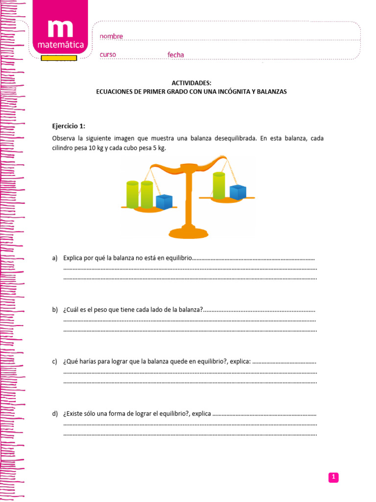 ECUACIONES DE PRIMER GRADO CON UNA INCÓGNITA Y BALANZAS
