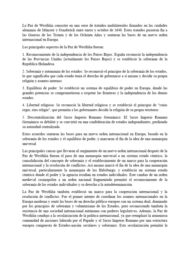 Paz de Westfalia fueron el paso de una monarquía universal a un sistema estado céntrico, la