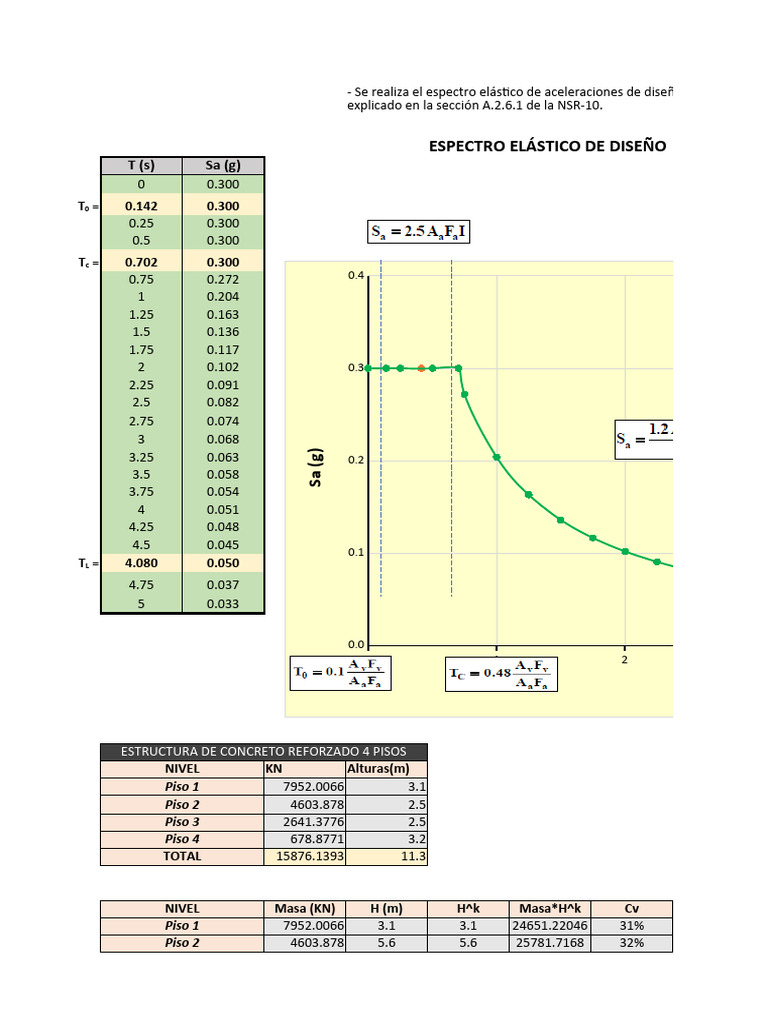 - Se realiza el espectro elástico de aceleraciones de diseño como fracción