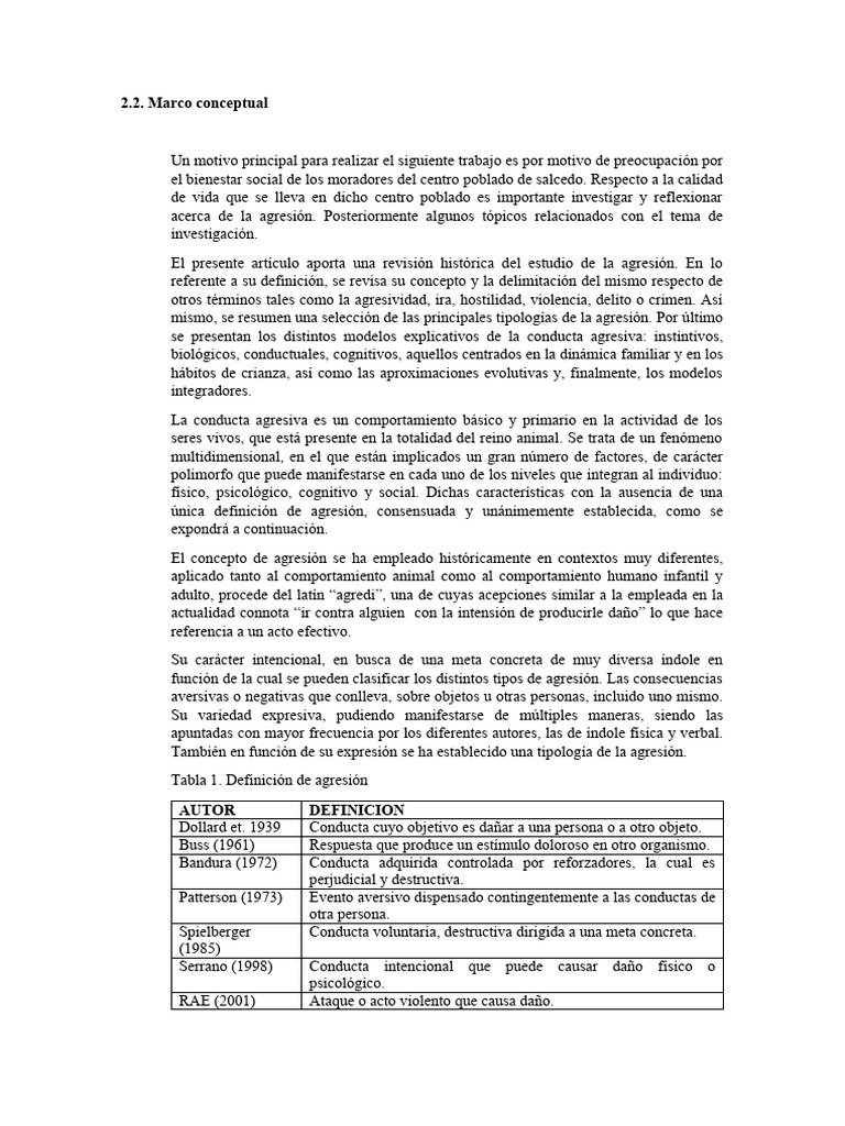 Tabla 1. Definición de agresión