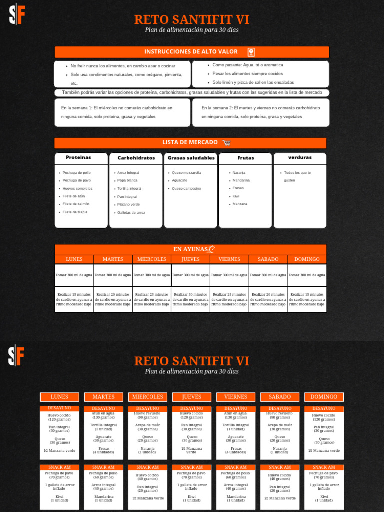 En la semana 1: El miércoles no comerás carbohidrato en En la semana 2: El martes y viernes no comerás carbohidrato