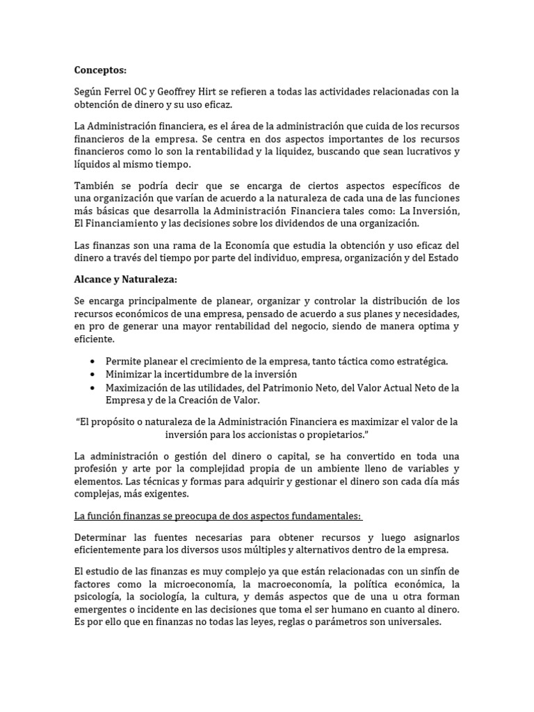 má s bá sicas que desarrolla la Administració n Financiera tales como: La Inversió n,