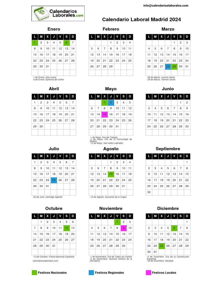 Calendario Laboral Madrid 2024