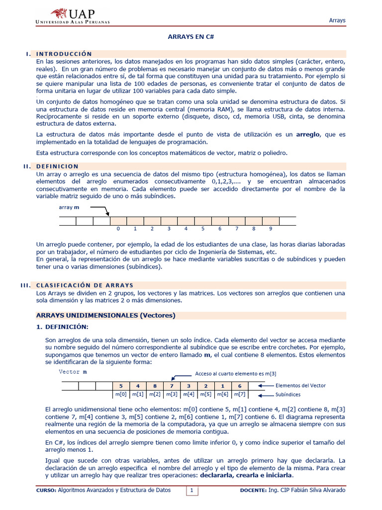 CURSO: Algoritmos Avanzados y Estructura de Datos 1 DOCENTE: Ing. CIP Fabián Silva Alvarado