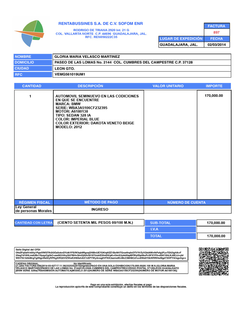 ||1.2|No FACTURA 896|2014-03-02T17:11:38|332535|2010|ingreso|PAGO EN UNA SOLA EXHIBICION|170,000.00|00.100 M.N.|GLORIA MARIA