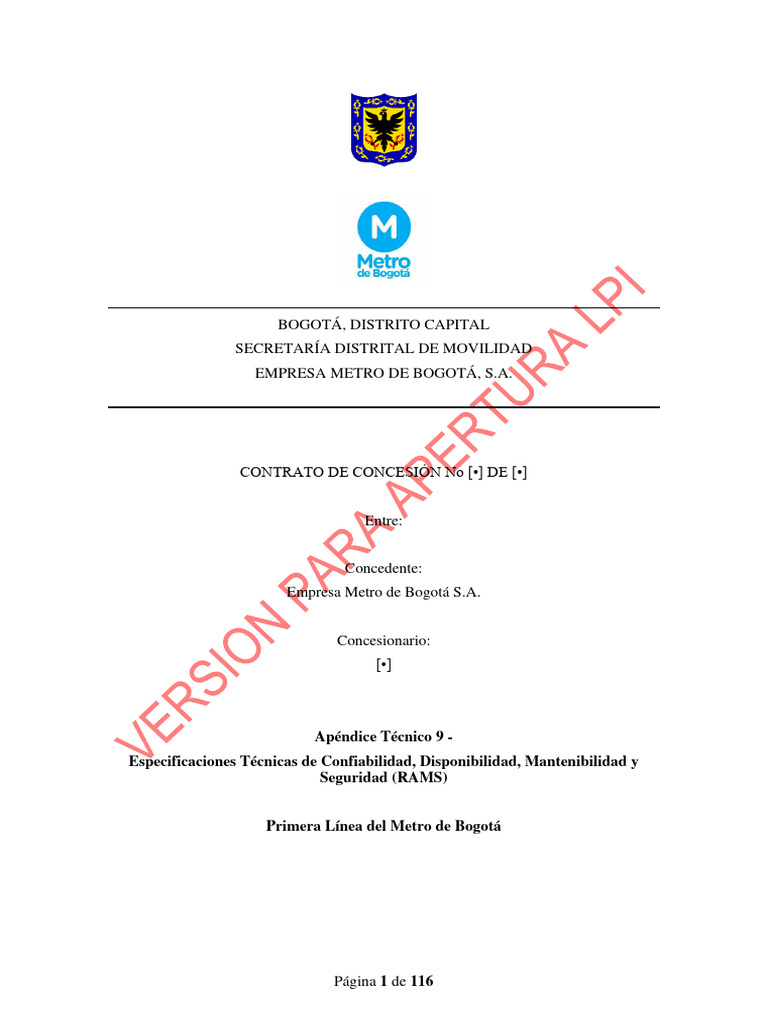 1.1 Alcance de los requerimientos de Seguridad de la PLMB – Tramo 1......... 51