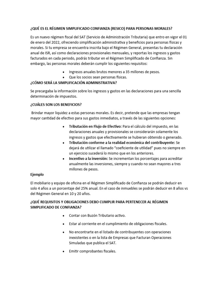 ¿QUÉ ES EL RÉGIMEN SIMPLIFICADO CONFIANZA (RESICO) PARA PERSONAS MORALES?