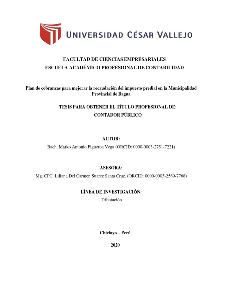 IMPUESTO PREDIAL EN LA MUNICIPALIDAD PROVINCIAL DE BAGUA” a ser