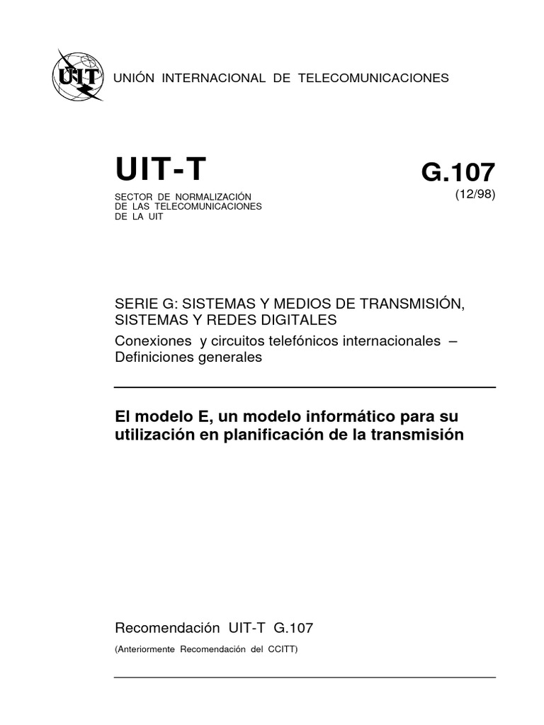 La Recomendación UIT-T G.107 ha sido preparada por la Comisión de Estudio 12 (1997-2000) del