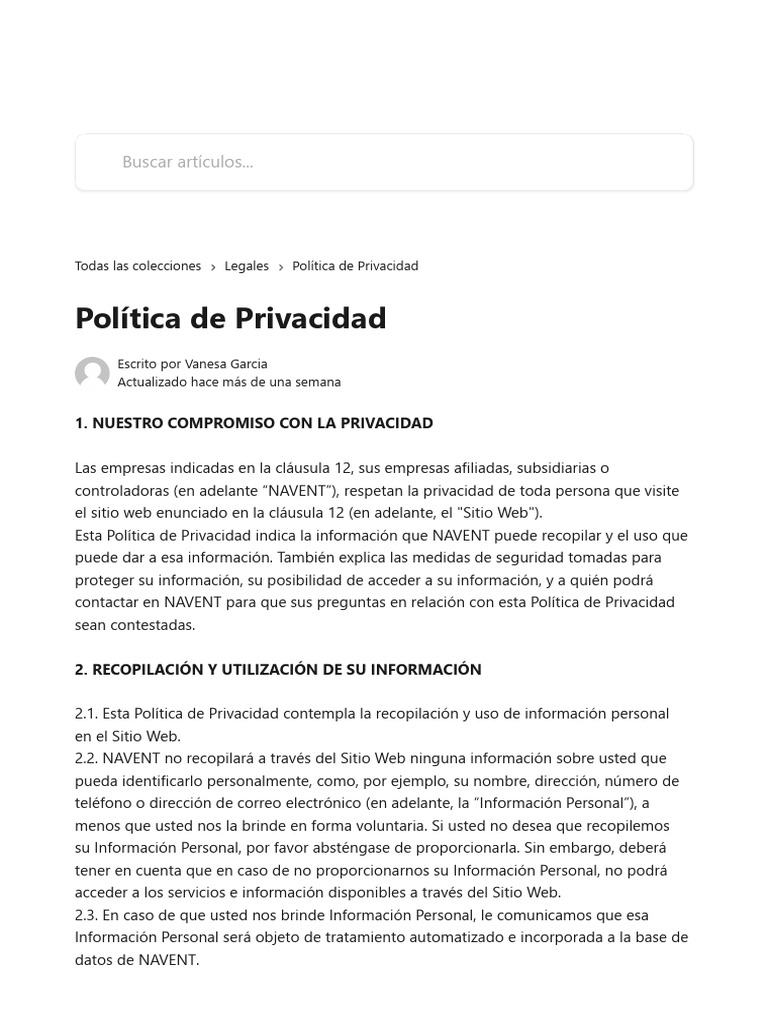 contactar en NAVENT para que sus preguntas en relación con esta Política de Privacidad
