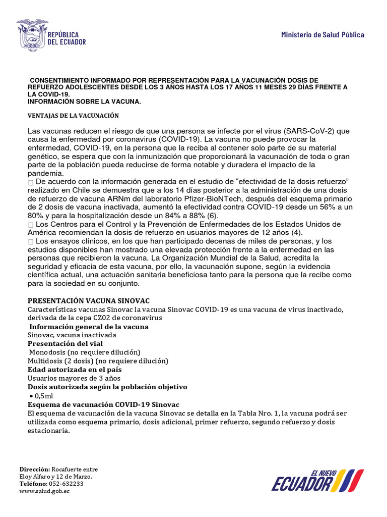 CONSENTIMIENTO INFORMADO POR REPRESENTACIÓN PARA LA VACUNACIÓN DOSIS DE