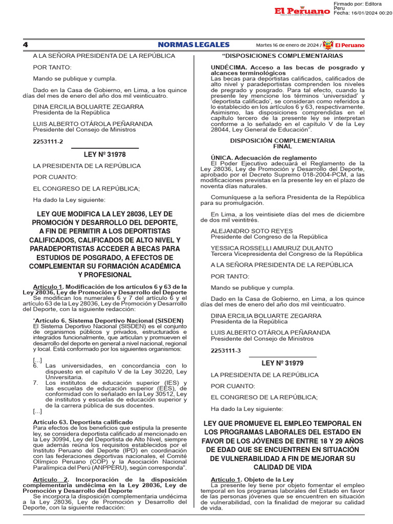 4 NORMAS LEGALES Martes 16 de enero de 2024 / El Peruano