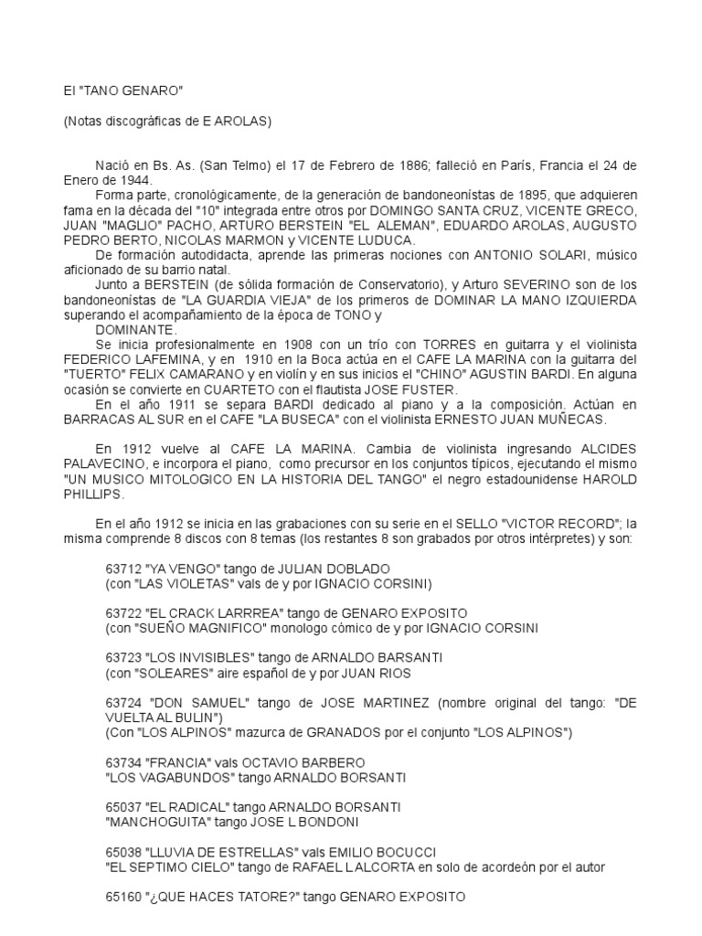 (Cabe aclarar que "Cuarteto Genaro" es exactamente el mismo tango que él había grabado