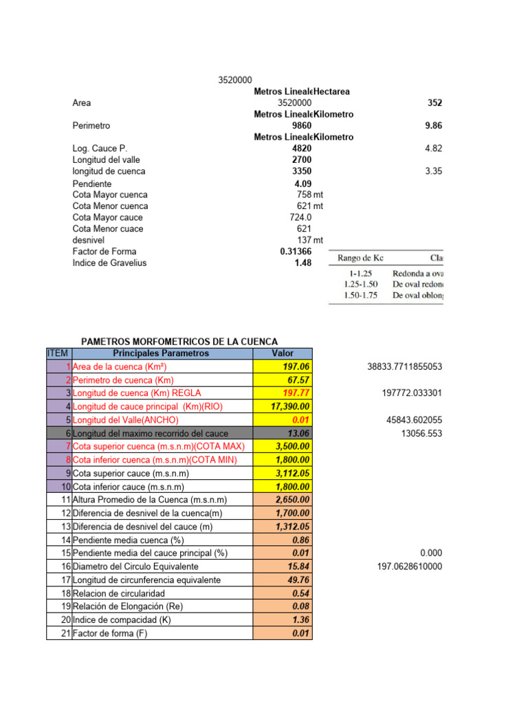 1 Area de la cuenca (Km²) 197.06 38833.7711855053