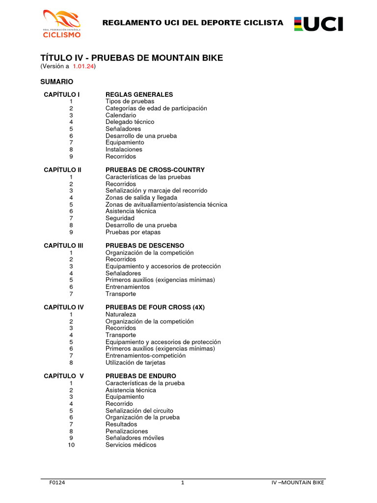 Reglamento UCI Mountain Bike