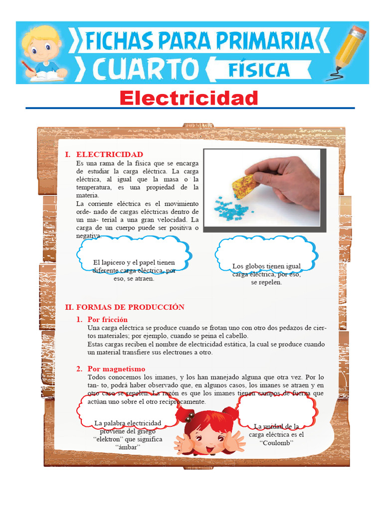 Una carga eléctrica se produce cuando se frotan uno con otro dos pedazos de cier-